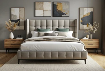 - Brak tradycyjnego wezgłowia lub wezgłowie na ścianie: Jeśli liczy się każdy centymetr, możesz zrezygnować z ramy z grubym, tapicerowanym zagłówkiem. Zamiast tego, możesz zamontować miękkie panele tapicerowane bezpośrednio na ścianie – to rozwiązanie niezwykle modne, wygodne i oszczędzające przestrzeń.